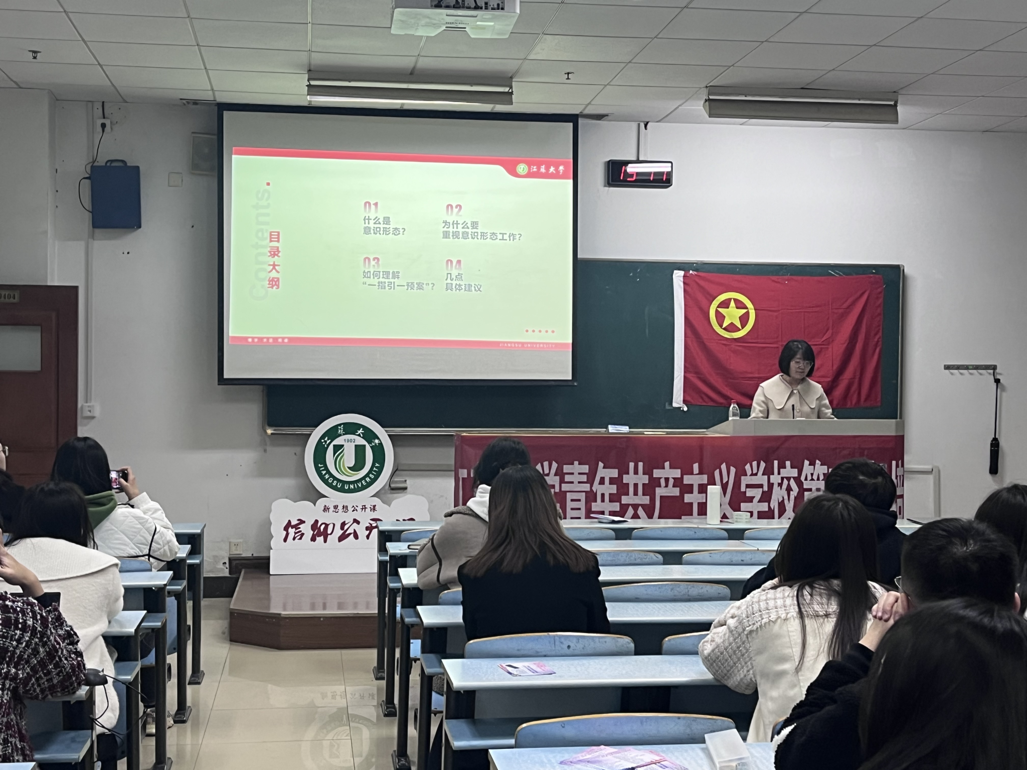活动中,刘丹围绕团学领域风险防范化解能力提升,结合“江小博”新媒体工作室的经验展开了详细的介绍,从什么是意识形态、为什么要重视意识形态工作、“一指引一预案”和一些具体建议四个方面展开。并强调维护高校政治安全和校园稳定的重要性,加强协同配合,切实把防范化解重大风险工作做实做到位,推动我校团学工作发展。