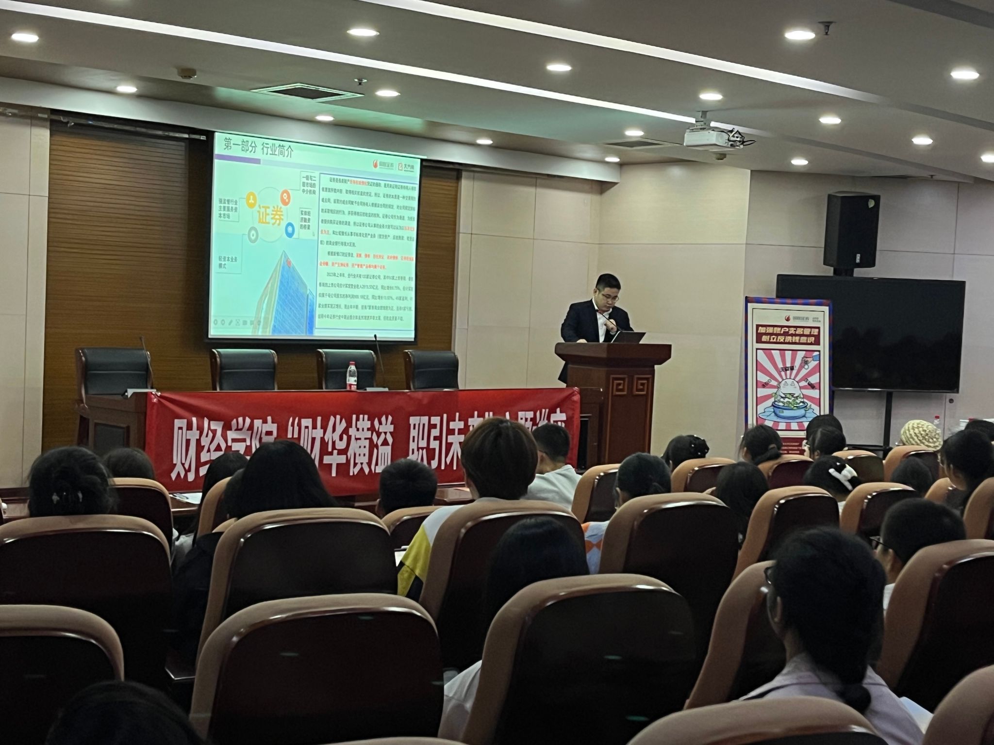 赵文年从证券行业发展现状、人才培养、职业规划等方面进行分享,详细指导学生如何撰写简历、如何投递简历、提高面试能力,并现场为学生普及防范金融诈骗知识。王奡围绕理财高手大赛的比赛方案、规则、奖项设置进行解读,并就同学们的问题一一进行解答。