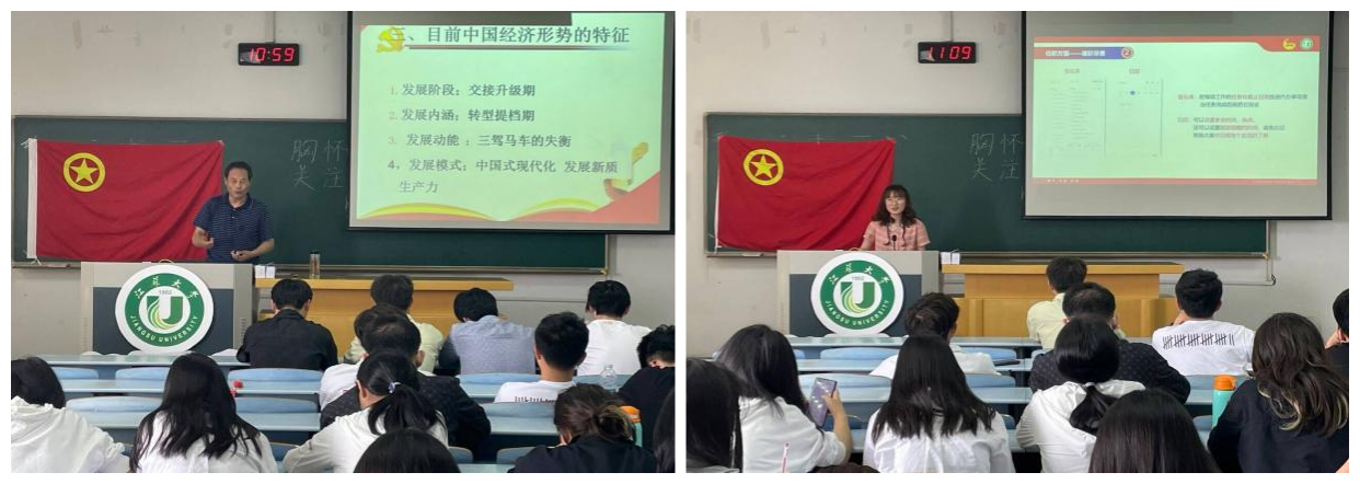 活动中,堵晓东老师以《胸怀“国之大者” 关注时代热点》为主题,由中国延伸至世界,从宏观拓展到微观,全面地论述了当前国际形势,帮助同学们更清晰地认识国内外局势,激励同学们积极承担时代赋予的重任,争做走在时代前列的奋进者、开拓者、奉献者。随即,顾心语同学结合自身丰富的社会实践经历和对西部支教的深切领悟,与同学们分享西部支教期间怎样克服困难,以及如何与当地学生构建深厚的情感。这段经历让她深切体会到教育对于改变命运的关键意义,也让她更为明确地意识到作为一名新时代青年应当肩负的社会责任。