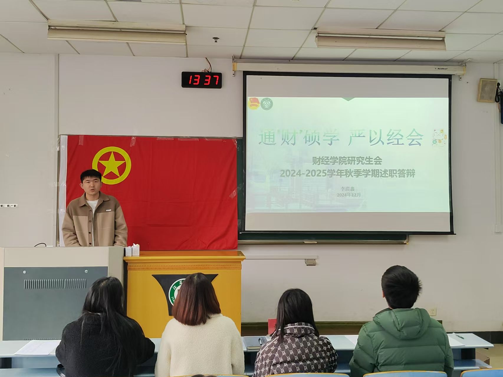 为持续提升英国上市官网365团学组织的凝聚力,深化对研究生会的日常指导、监督与协调,12月11日,英国上市官网365在三江楼302举办2023-2024学年秋季学期研究生会述职评议会,英国上市官网365团委书记张明亮、研究生辅导员赵璐、院研究生会全体成员参加活动。
