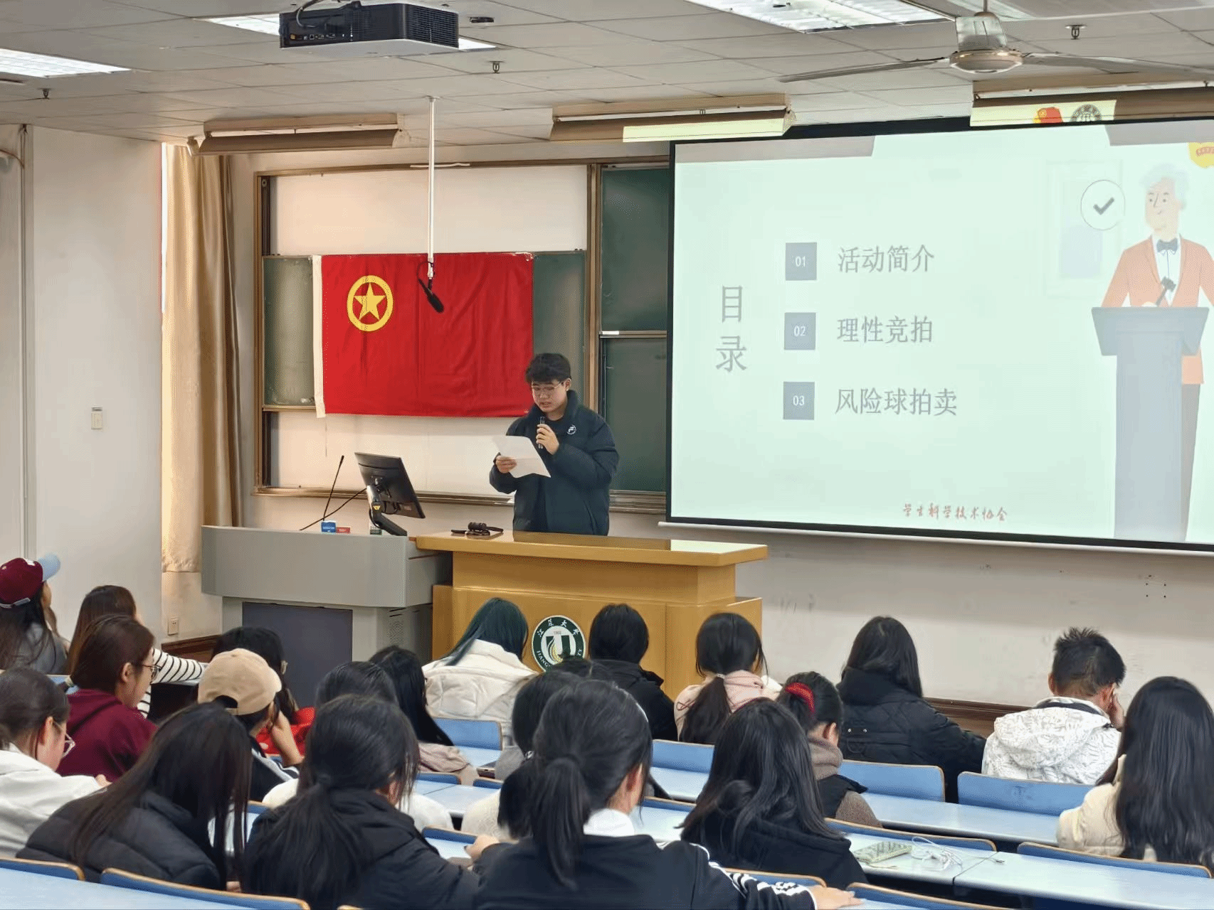 活动以2025年10月市场为背景,推出18件涵盖日常用品与高价值商品的拍品,引导同学们在竞价过程中直观体验价格变化与市场信号的作用。其中,“风险球”拍卖环节尤其引人关注,活动设置了社区生鲜团购、太阳能储能、网红品牌加盟三类贴近现实的投资场景,每个项目都兼具收益空间和潜在风险。同学们在团队讨论中不断权衡利弊,在有限信息下做出出价判断,进一步加深了对风险评估、成本收益分析和市场竞争逻辑的理解。一位参赛学生表示:“这次活动让我真切感受到经济就在我们身边。从判断商品价值到评估投资风险,每一步决策都需要理性分析,这次活动很好地锻炼了我们的逻辑思维。”