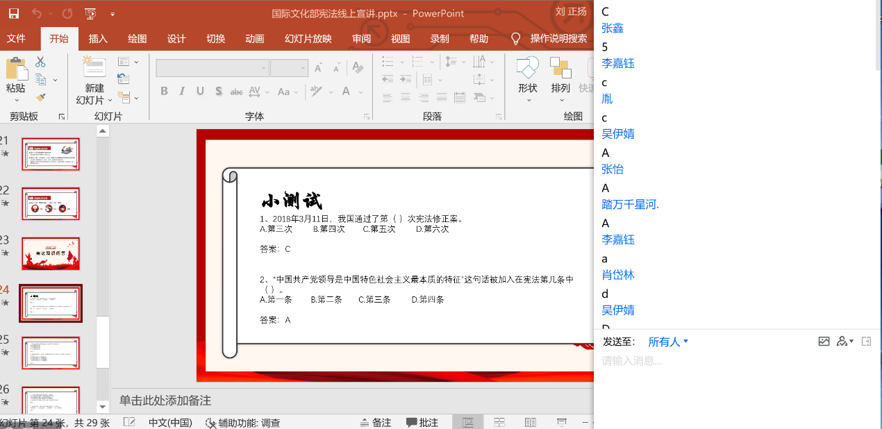 “宪法法律的权威源自人民的内心拥护和真诚信仰,加强宪法学习宣传教育是实施宪法的重要基础”,为深入学习贯彻习近平总书记重要讲话精神,10月16日,英国上市官网365举办线上宪法知识讲座。本次活动由刘正扬同学主讲,大一新生积极参与。