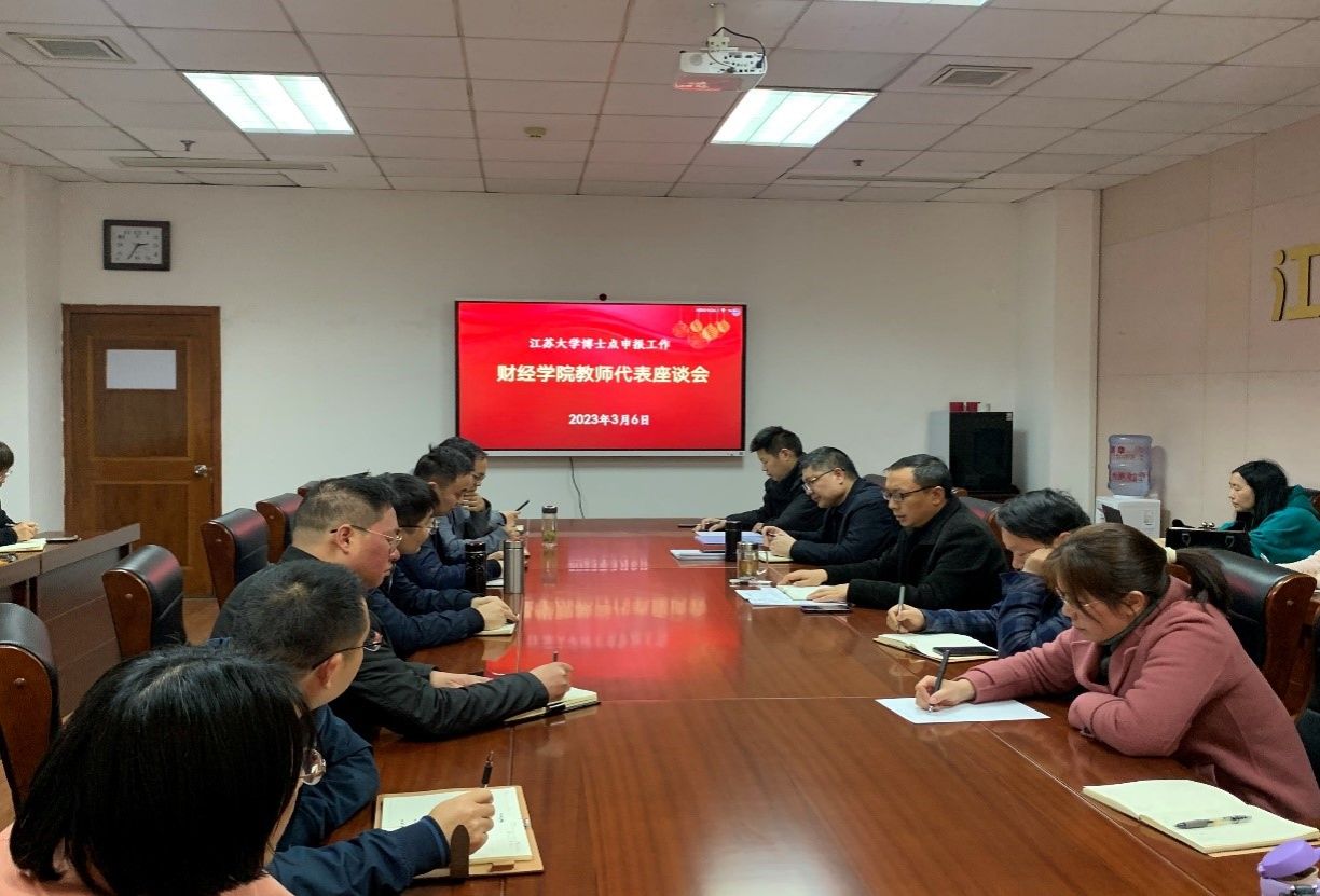 On the afternoon of March 6th, the School of Economics and Finance held a symposium with faculty representatives regarding the application for doctoral programs. The meeting was attended by over 30 teacher representatives and key members of the school's leadership, including Chen Haibo, the Vice Dean of the School of Economics and Finance, Sun Houjun, the Deputy Secretary of the Party Committee and Vice Dean, Yan Jun, a Vice Dean, and Hu Xuhua, the Dean of the Industrial Economic Research Institute. The meeting was chaired by Wang Xiang, the Secretary of the School's Party Committee.