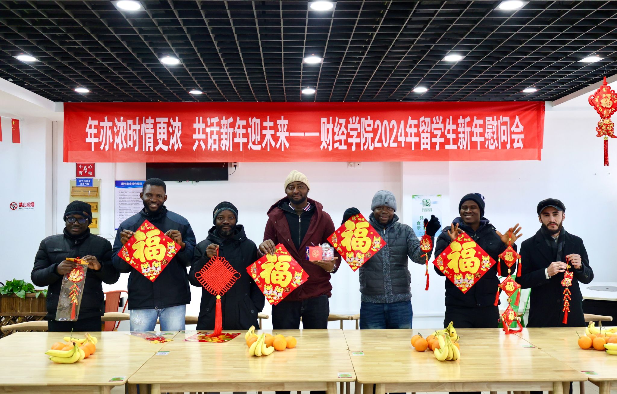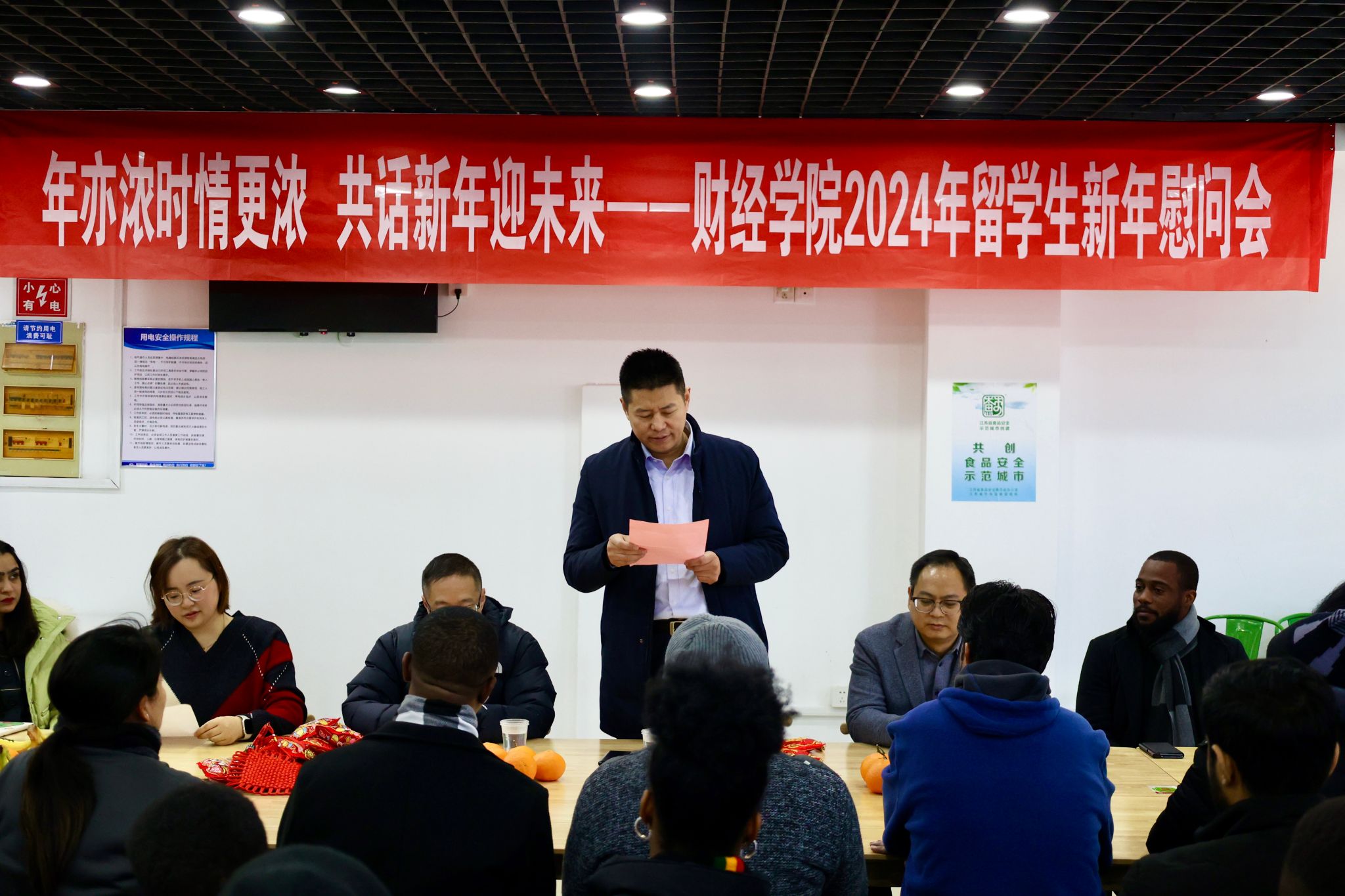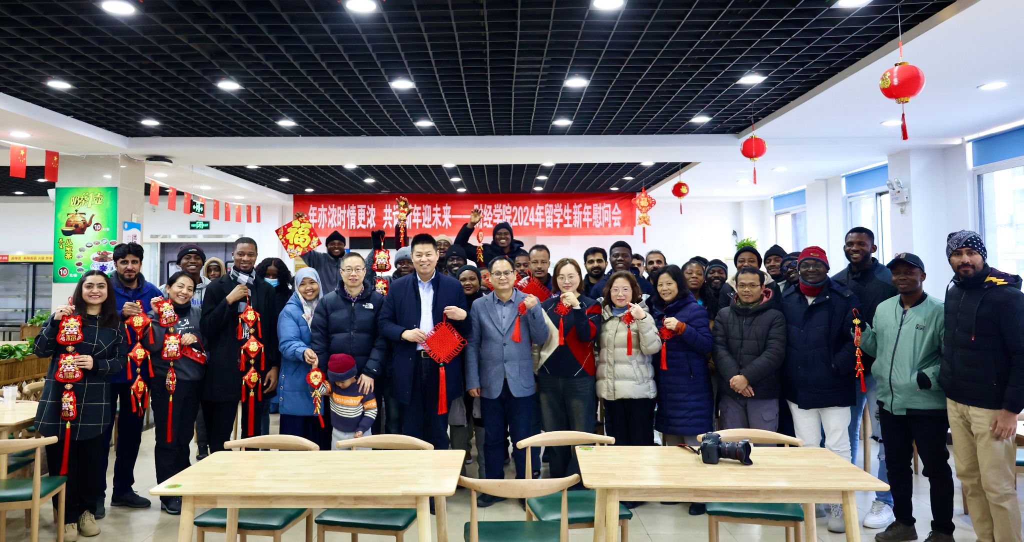 On the afternoon of December 29, 2023, the School of Finance and Economics held a New Year’s celebration event for 2024 at the Ethnic Restaurant of Jiangsu University, with the theme "Stronger Affection in the New Year, Embracing the Future Together." Professor Hu Xuhua, the dean of the School of Finance and Economics, along with the vice deans Yan Jun, and Li Kaodui, and Zhu Yanjie, the director of the International Education Office, as well as more than 40 student representatives from over 10 countries, attended the New Year’s greetings event.