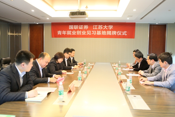 Opening ceremony of‘Youth employment and entrepreneurship practice base’of the Central Committee of the Communist Youth League of China held by Jiangsu University and Guolian securities CO.,LTD in Wuxi, the headquarter of Guolian securities CO.,LTD.