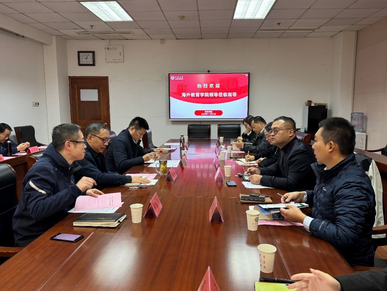 座谈会上,王祥、胡绪华对海外教育学院一行的到来表示热烈欢迎和衷心感谢。胡绪华从学院留学生规模、教学培养、办学特色、过程管理、教学成果、奖学金设置等方面进行了简要介绍,并表示下一步将针对留学生教学培养问题,积极与海外教育学院加强沟通,通过培训等举措强化教学和培养能力,保障教学任务高质量完成,培养造就更多优秀来华留学生,共同推动学校来华留学生事业再上新台阶。