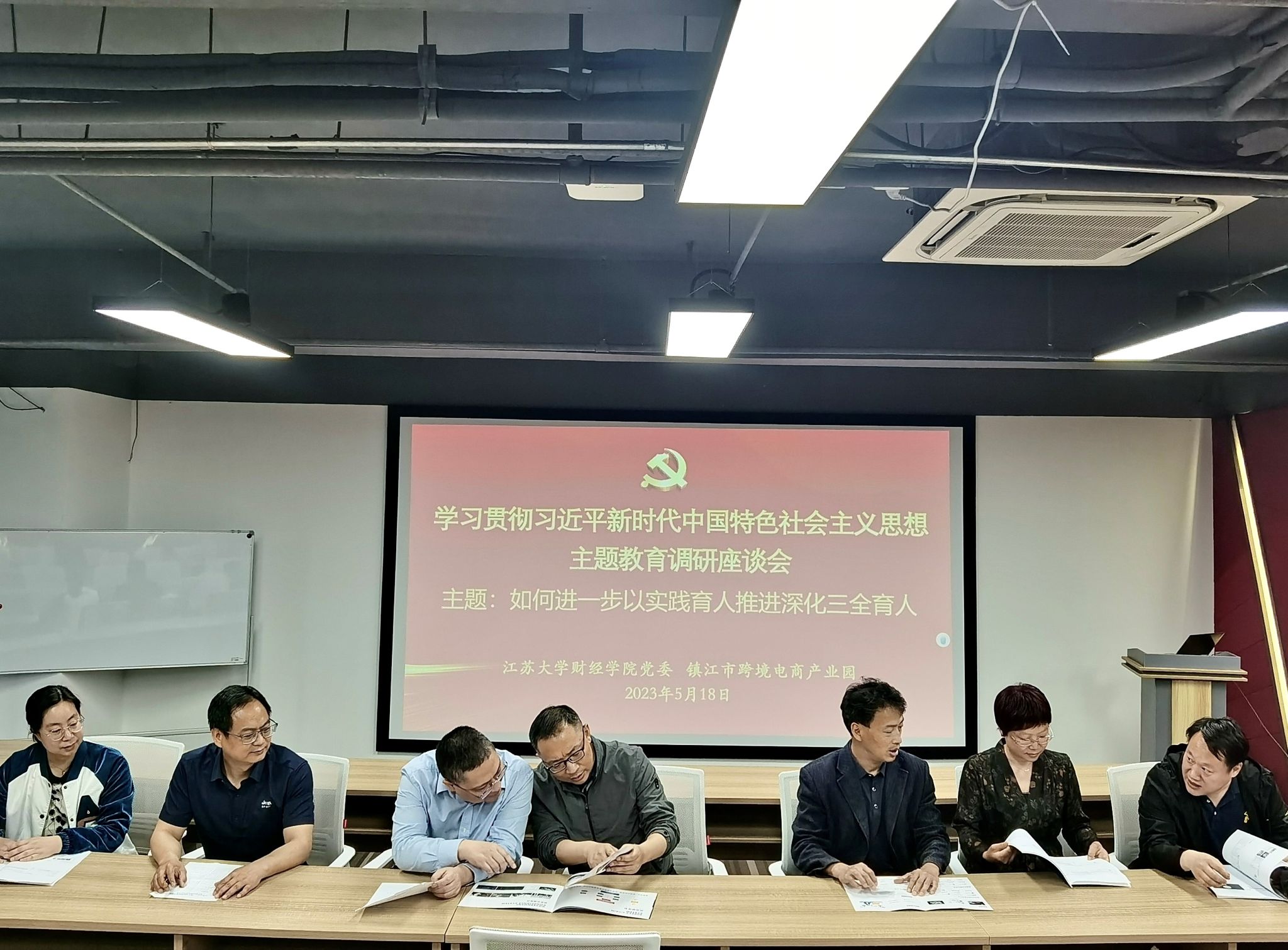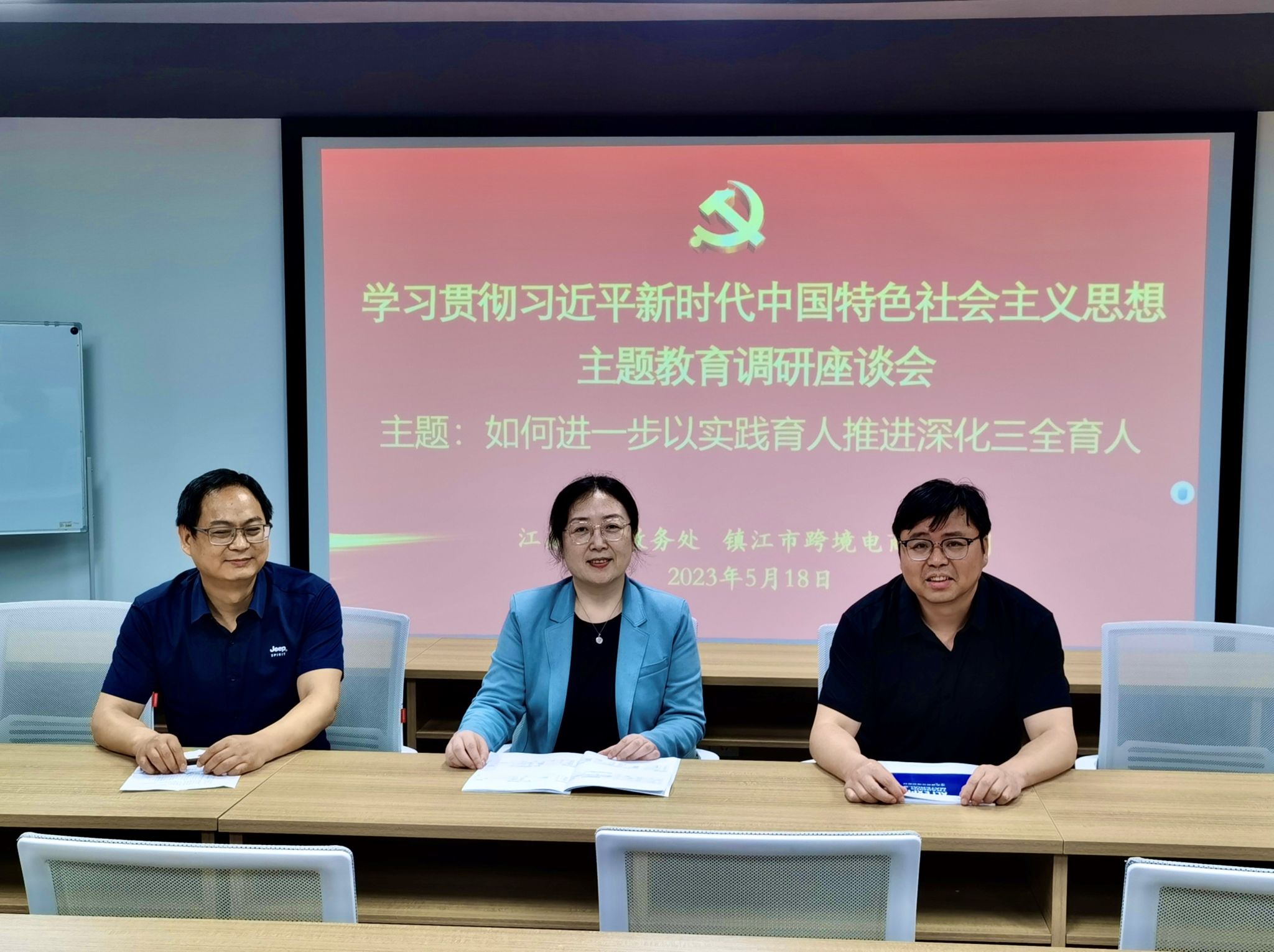 围绕“如何进一步以实践育人推进深化三全育人”调研专题,在局领导、区领导和产业园工作人员的陪同下,薛宏丽、王祥一行参观了位于产业园八号楼六楼的“镇江跨境电商品牌赋能中心”,并翻阅学习了产业园提供的项目入驻、孵化等各类宣传、培训资料。浙江国贸数字镇江项目负责人为大家介绍了江苏省各城市跨境电商的规模状况与数据排名情况,现场演示了镇江市跨境电商实时运行情况,并详细介绍了产业园的建设目标、建设任务以及建立6大体系、特色出口商品分布等情况,同时展示介绍了相关实践实训、入驻孵化空间和“跨境电商直播”“一亿美金加速器”等集成化的一揽子创业孵化功能。薛宏丽、王祥一行对市商务局、区政府真诚关心、积极支持有志青年特别是优秀大学生创新创业实践表示衷心感谢,并就加强政策宣介、开展实践教学、推荐优质项目、持续拓岗就业开展了交流,交换了意见。
