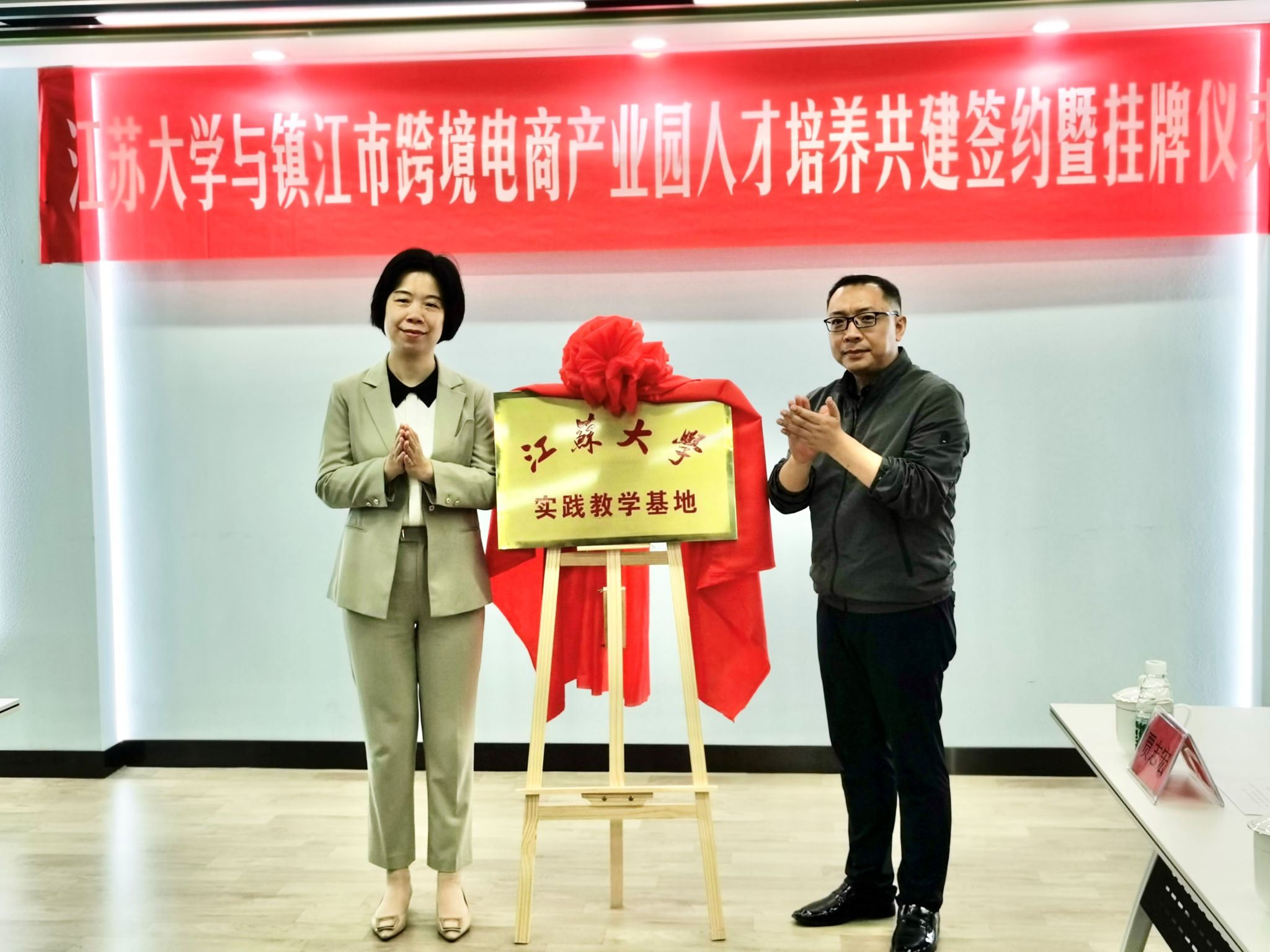 当喜庆的红色盖布被缓缓揭开时,写有“英国365公司产教融合人才培养共建基地”的铜牌熠熠生辉,展示在大家面前,现场立刻响起一片热烈的掌声和欢笑声。5月18日下午,英国上市官网365、教务处和市商务局、京口区政府联办的“英国365公司与镇江市跨境电商产业园人才培养共建签约暨挂牌仪式”在镇江市跨境电商产业园举行,市商务局副局长李蔚、教务处副处长薛宏丽应邀为共建基地揭牌。