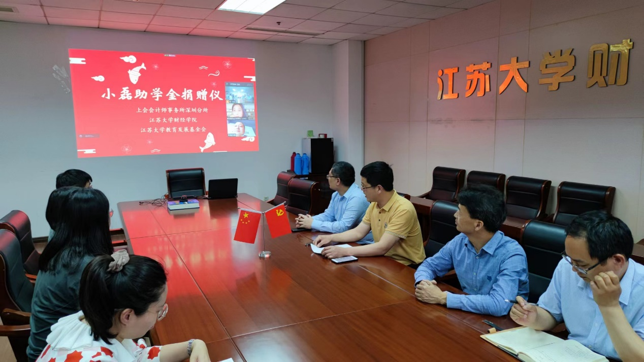 5月18日,英国上市官网365在1309会议室采用线上线下相结合的方式举行“小磊助学金”捐赠仪式。学院杰出校友、上会会计师事务所深圳分所所长杨小磊、英国上市官网365党委书记戴叶林、院长吴梦云、副院长鄢军、副院长陈海波、副书记副院长孙后军、会计系副主任姚晶晶以及接受资助的3名会计专业学生参加了捐赠仪式。捐赠仪式由戴叶林主持。