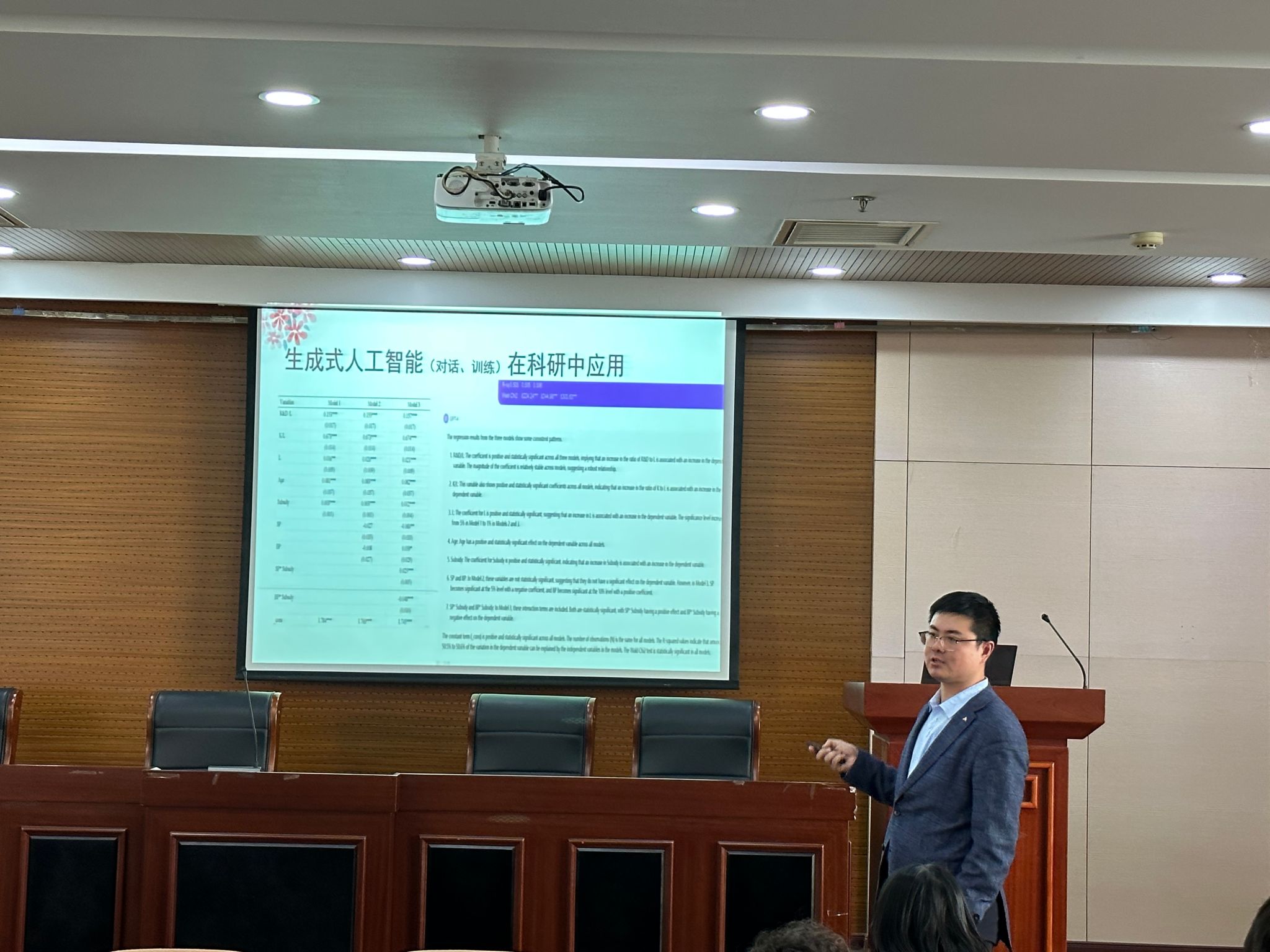 本次讲座中,石俊国从传统的科学研究人工智能工具、新兴的人工智能工具和生成式人工智能在科研中的应用三个方面向师生介绍了有助于科学研究的人工智能工具及使用方法,并结合自己的科研经历和实际应用情况向大家介绍如何在科学研究中应用这些工具。此外,石老俊国也为同学们解答了相关的疑惑,现场学术氛围浓厚。