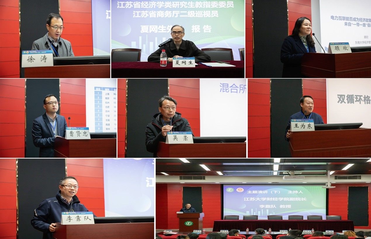 开幕式后,江苏省经济学类研究生教育指导委员会委员、江苏省商务厅二级巡视员夏网生先生,东南大学青年特聘教授、博士生导师、江苏省决策咨询基地首席专家顾欣教授,华东师范大学城市发展研究院院长助理、博士生导师、上海市高校重点智库上海城市发展协同创新中心副主任曹贤忠教授,民盟江苏省委教育工作委员会委员、南京信息工程大学商学院吴崇教授,英国上市官网365国际经济与贸易系主任王为东教授5位专家依次作了主题演讲。主题演讲环节分上下两场进行,分别由徐涛教授和李靠队教授主持。