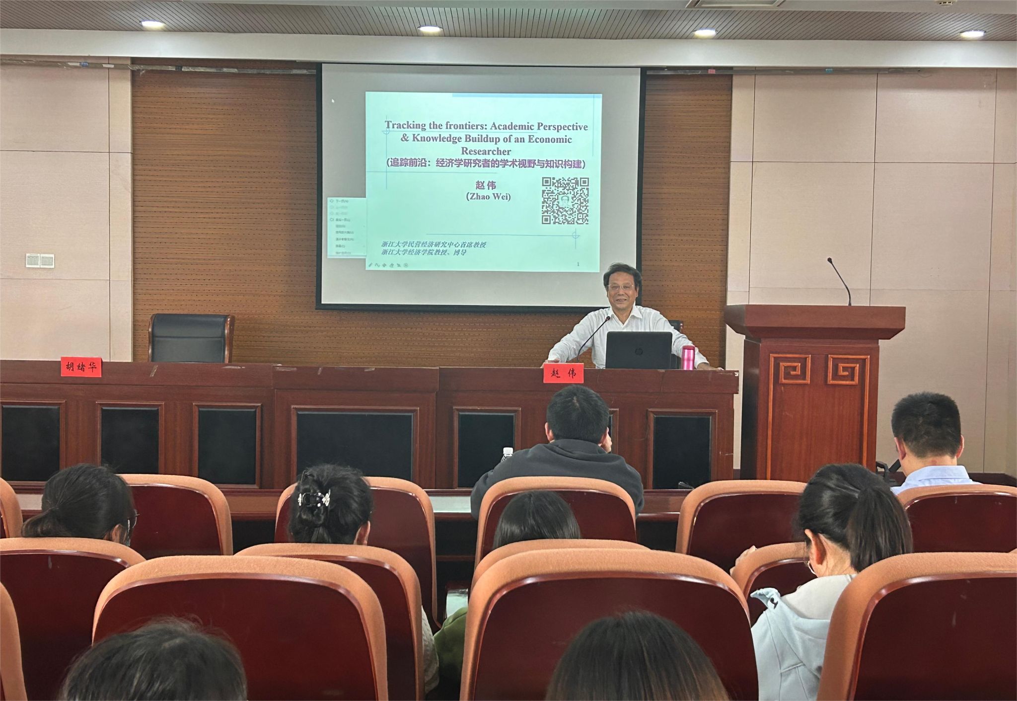 4月1日,浙江大学经济学院教授、中国区域科学协会空间经济学专业委员会副主任、浙江省经济与管理研究会副会长兼专家委员会主任赵伟教授应邀在英国上市官网365三江楼1301报告厅举行题为“追踪学术前沿:经济学研究者的学术视野与知识构建”的学术讲座。讲座由英国上市官网365院长胡绪华教授举行,副院长李靠队教授以及来自英国上市官网365、管理学院的百余名师生参加了此次讲座。