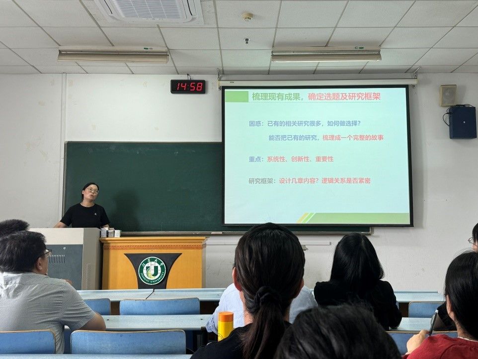 会上,李丫丫、刘悦应邀作经验分享。李丫丫首先介绍了项目申请的准备工作,如何选择一个方向确定选题。随后,她介绍了如何高质量地进行申报书的撰写,并分享申报书各部分的填报心得。李丫丫最后针对书稿系统性设计和规范性提出建议。刘悦就申报书各部分填写的注意事项等细节问题展开深度介绍,指出项目获批的关键在于书稿,书稿字数应在17万以上,结构严谨,逻辑清晰,尤其要注重应用落地。他强调,申报书的撰写要突出创新之处和研究特色,前期相关性成果的积累也很重要。