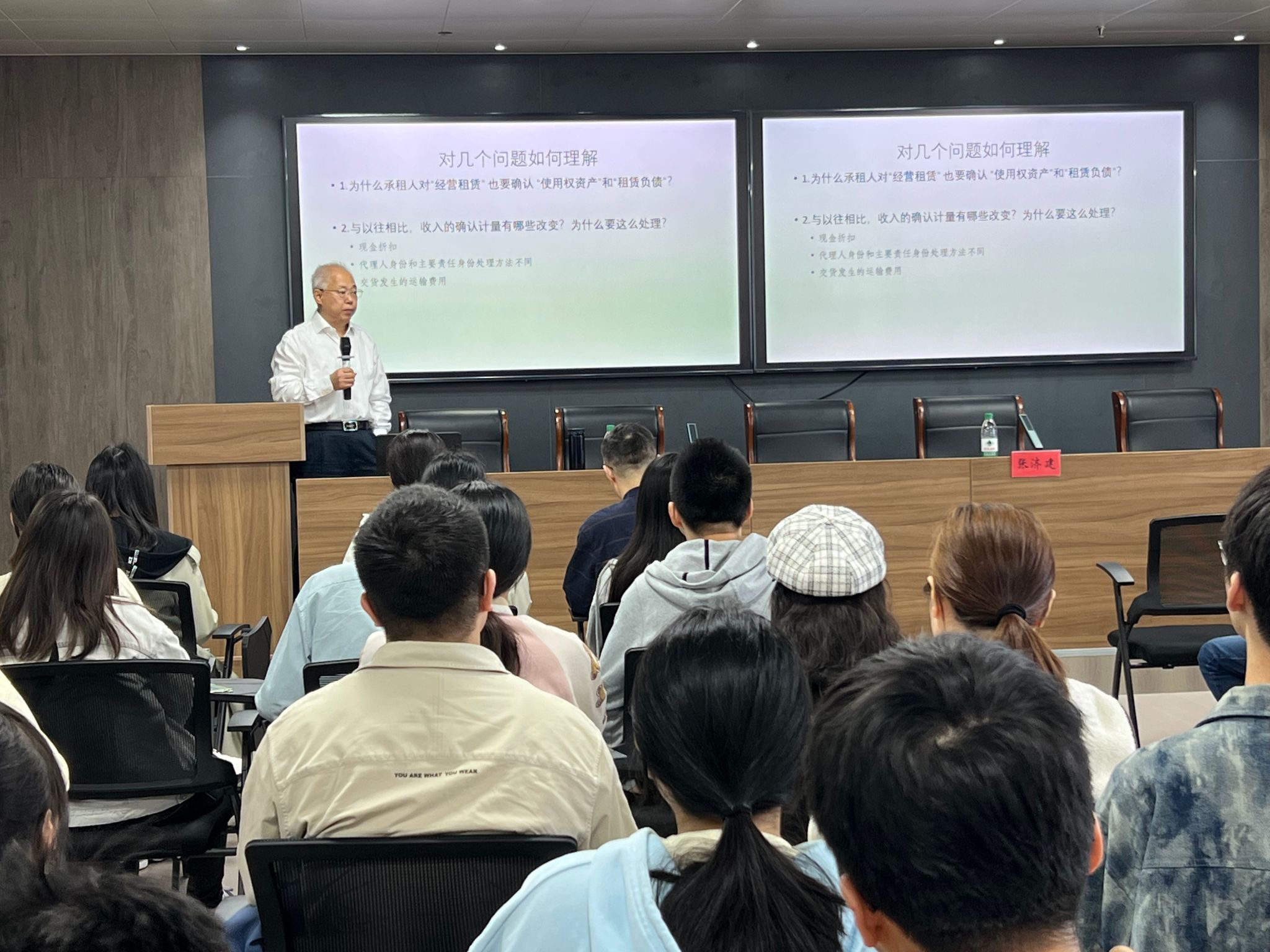 报告伊始,赵西卜教授从经营租赁、收入的确认计量、投资性房地产转换、非同一控制的企业并购(构成业务)对商誉和廉价购买利得的处理等方面详细地分析了企业会计准则方法背后可能的理念,并由此引入跨界会计的基本原理和方法,总结了可研究讨论的与跨界会计相关问题。随后,赵教授对跨界会计的基本概念(跨越核算方法界限引起的会计核算方法转换)、原理与方法做了详细叙述。他指出,跨界会计被认为是重大经济事项,需要对其结果以公允价值计量,并进一步阐述了跨界会计的核算方法转换类型(增资和减资两种情况下的主动式和被动式转换)。报告期间,赵教授还引用了大量的实际案例,结合理论知识深入浅出地讲解了股权投资与被投资单位的关系及对应的核算方法,以及跨界会计在个别报表层面和合并报表层面的主要类型和业务特征,使同学们对跨界会计有了更加直观和深入的理解。同时,他还与现场师生进行了互动交流,回答了大家提出的问题,现场气氛热烈而活跃。
