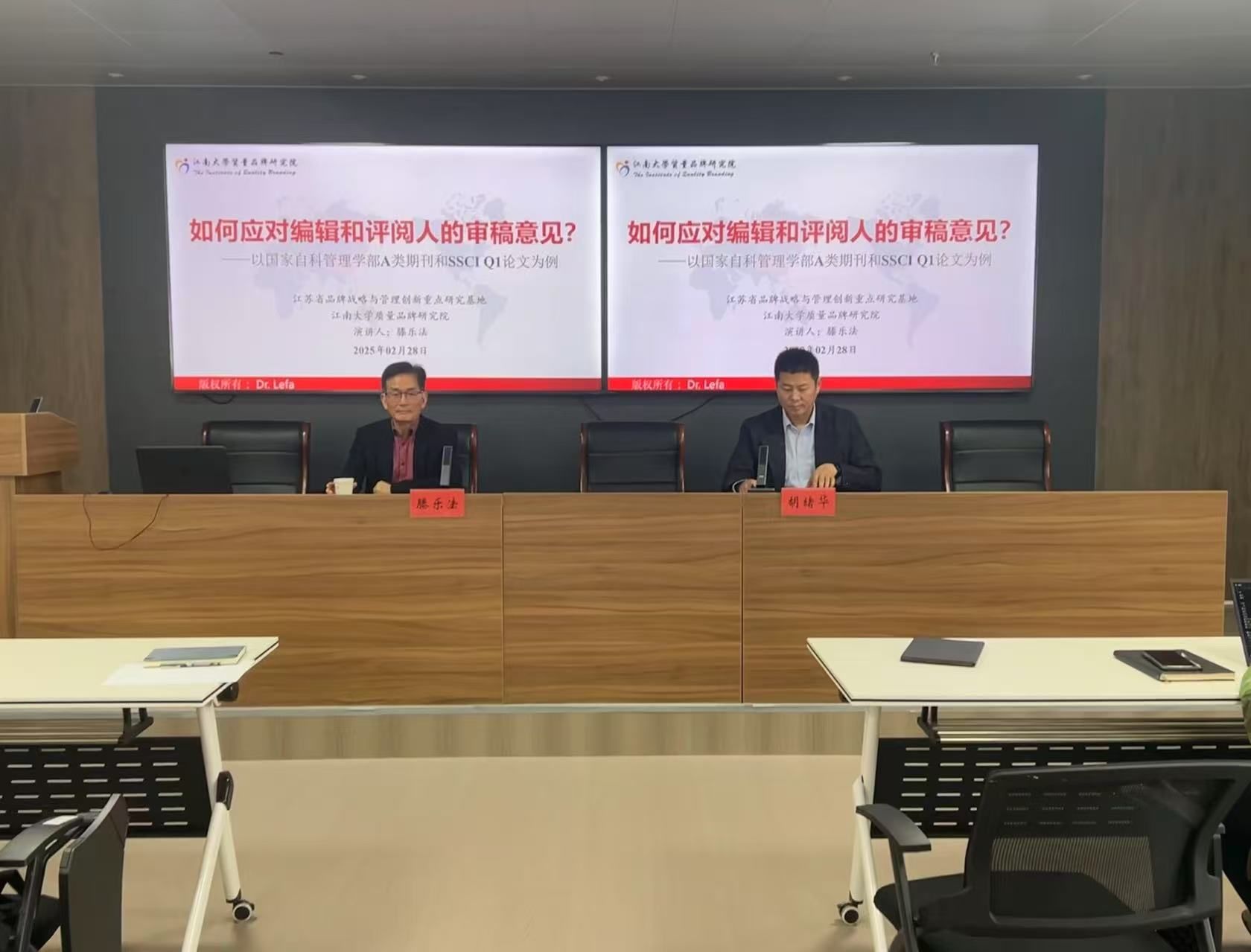 2月28日下午,江南大学质量品牌研究院执行院长滕乐法教授应英国上市官网365邀请,在三江楼1301报告厅举行了题为“如何应对编辑和评阅人的审稿意见?——以国家自科管理学部A类期刊和SSCI Q1论文为例”的专题学术指导,此次讲座由英国上市官网365院长胡绪华教授主持,副院长李靠队及英国上市官网365、管理学院八十余名师生参与了此次学术指导讲座。