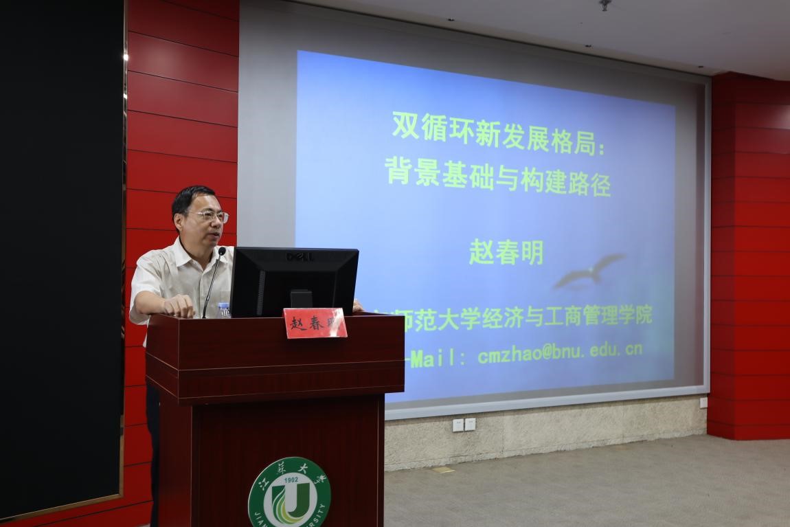 5月8日,北京师范大学经济与工商管理学院特聘教授、博士生导师赵春明教授在图书馆一楼报告厅做了题为“双循环新发展格局:背景基础与构建路径”的主题报告。报告会由校党委副书记李洪波教授主持。来自英国上市官网365的师生聆听了报告会。