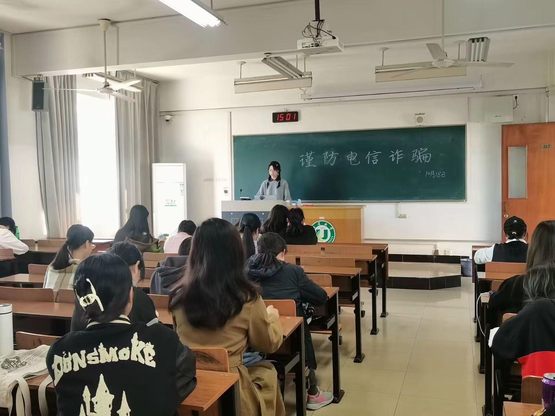 为广泛宣传谨防电信网络诈骗,提高广大学生预防电信诈骗的防范意识,10月11日至10月31日,财经学院21级各班级组织开展“提高安全防范意识,远离电信网络诈骗”主题班会,班会由各班班长主持,辅导员李华、吴思远和全体同学参加。
