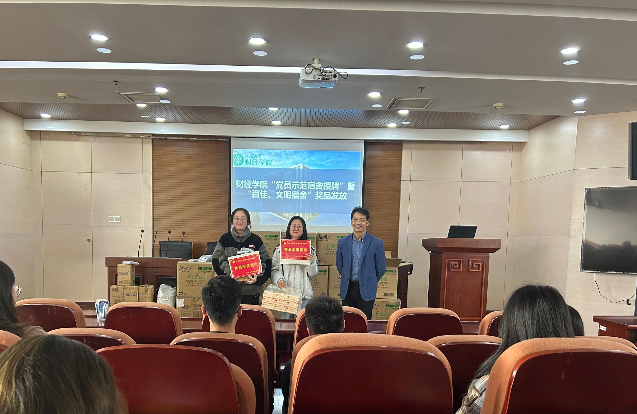 “党员示范宿舍”授牌暨“百佳、文明宿舍”奖品发放仪式,丰富了社区日常教育,加强了社区积极联动,有效引导了优秀宿舍主动接受广大师生监督,激励学生将宿舍真正变为整洁舒适、健康文明的学习生活空间。