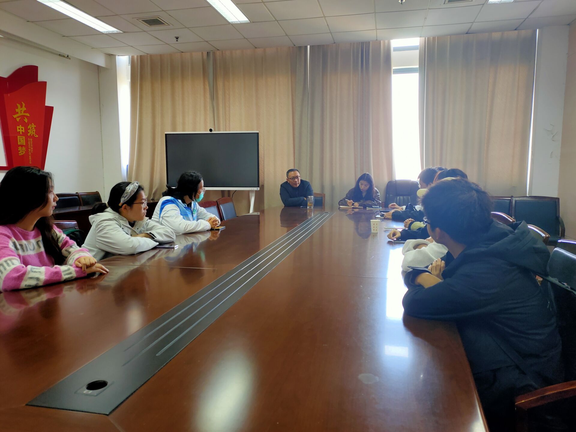 座谈会伊始,班委们围绕开学初以来的工作、遇到的问题等进行了交流。班长王乐泉提出目前班级存在的3个问题:一是同学们参加活动积极性不高;二是同学间交流不充分;三是学习劲头有所懈怠。团支书刘欣桐和其他班干部,也结合负责的工作谈了想法。张颖对班干部的工作给予充分肯定,对大家提出来的问题进行了回应与说明。