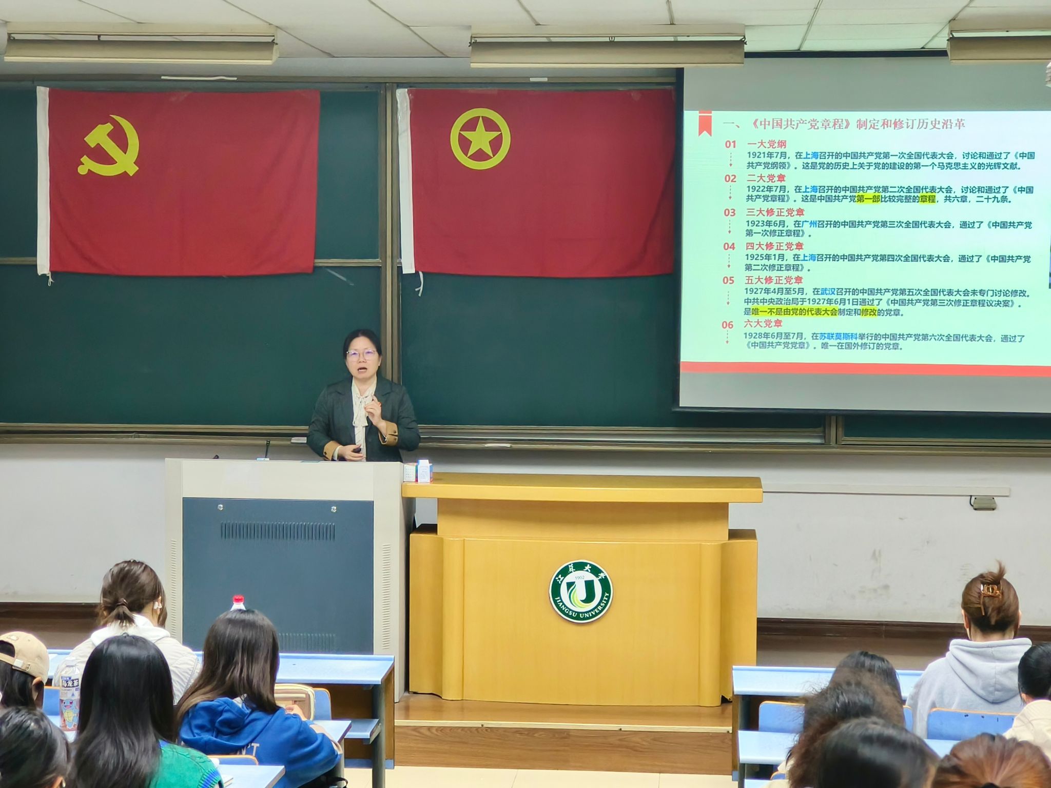 团课中,万武以《党史百年波澜阔,党规引领新征程》为主题,她围绕党的二十大通过的新修订的《中国共产党章程》核心内容,详细阐述了党章制定和修订的历史沿革,带领大家全面回顾了党章的发展历程。随后,她依据新修订发布的《中国共产党纪律处分条例》,结合上半年党纪学习教育开展情况,重点讲解了党的政治纪律、组织纪律、廉洁纪律、群众纪律、工作纪律、生活纪律等“六大纪律”,要求大家认真学习党规党纪,搞清楚党的纪律规矩是什么,弄明白能干什么、不能干什么。万武强调,守党纪、扬清风是每个党员应尽的责任和义务,希望大家学纪、知纪、明纪、守纪,强化党的纪律规矩意识,改造主观世界,坚定理想信念,提升思想境界,加强党性锻炼,切实将党的纪律内化于心、外化于行。互动交流中,她巧妙地融入问答环节,聚焦党章知识和党的六大纪律提问,引导团员青年积极思考,进一步加深了大家对党章内容及党规党纪的理解与把握。大家热情高涨,积极参与问答,现场交流、分享、学习氛围浓郁。最后,万老师再次强调,学习党章党纪不仅是为了增强理论素养,更是为了更好地指导实践、推动工作,鼓励同学们要勇于担当、积极作为,将学到的理论知识运用到实际工作中去,为解决实际问题、创造美好生活贡献自己的力量。