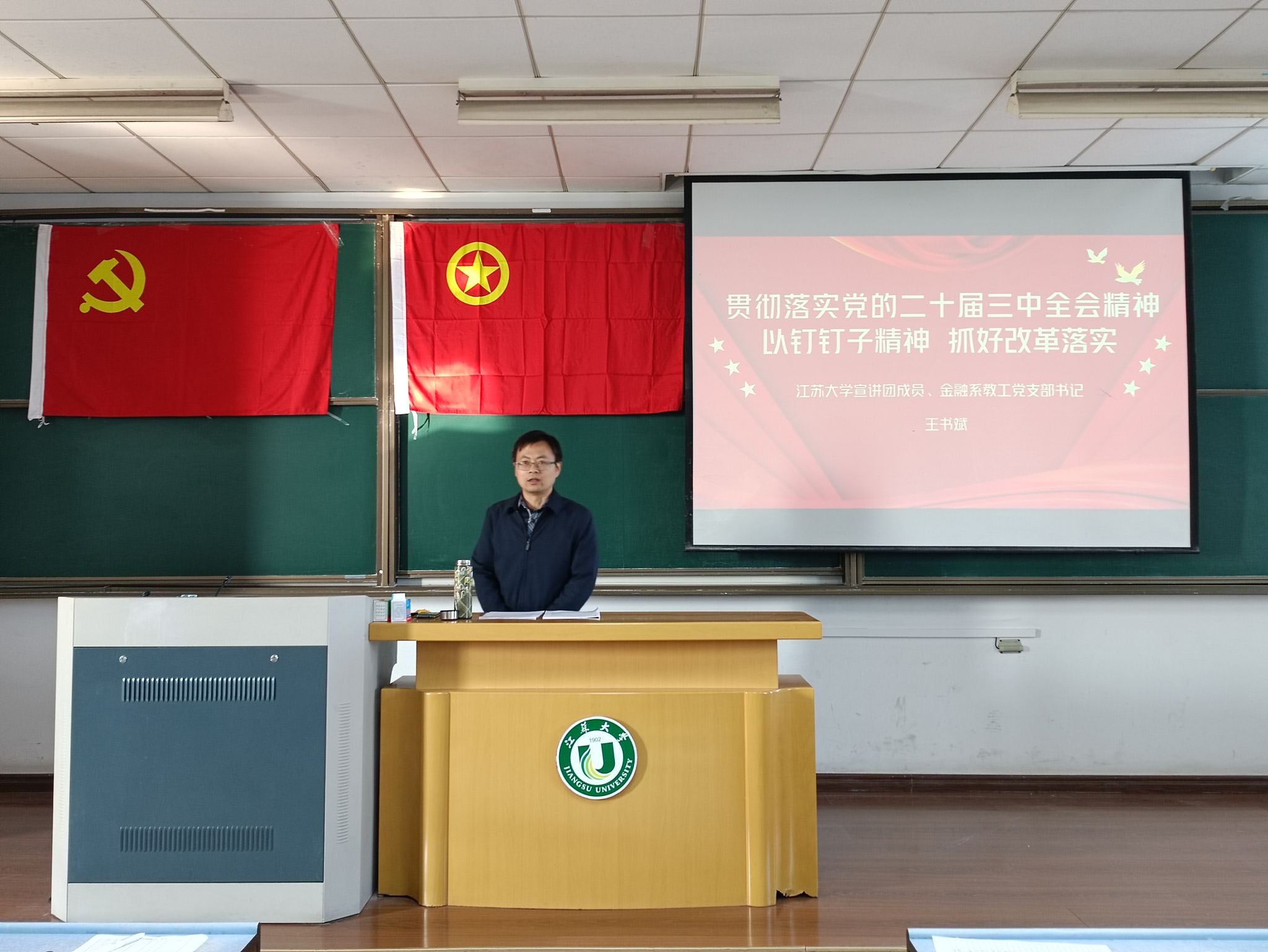 11月2日,英国上市官网365在三江楼0701教室举办英国365公司青年共产主义学校第79期第三讲团课,团课邀请党的二十届三中全会精神宣讲团成员、金融系教工党支部书记王书斌主讲,学院150余名团学骨干参加讲座。