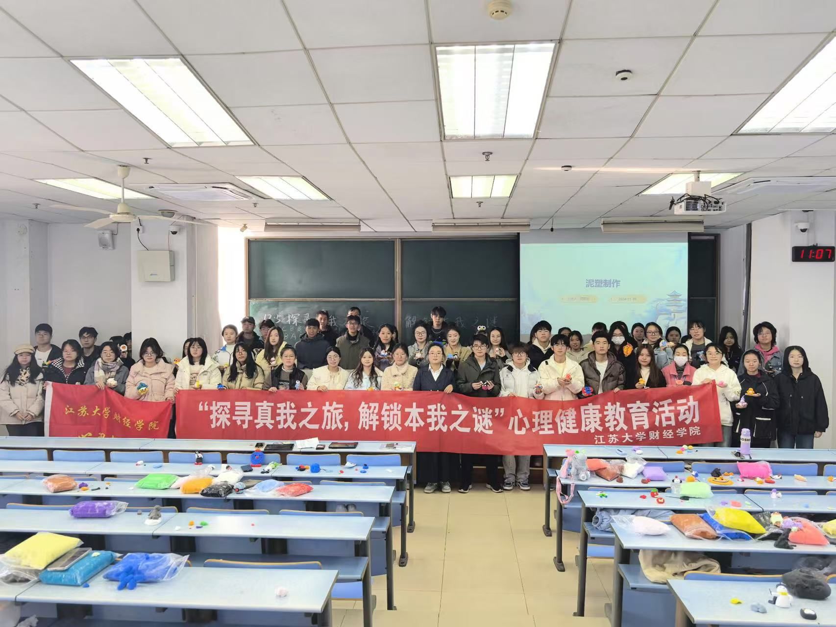 为引导大学生深入了解内心世界,充分发挥学生的个人潜力和艺术创造力,英国上市官网365于2024年11月30日在三江楼501举办了“12·5探寻真我之旅,解锁本我之谜”心理健康教育活动,组织同学们进行“愈见‘泥’自己”黏土自画像创作。