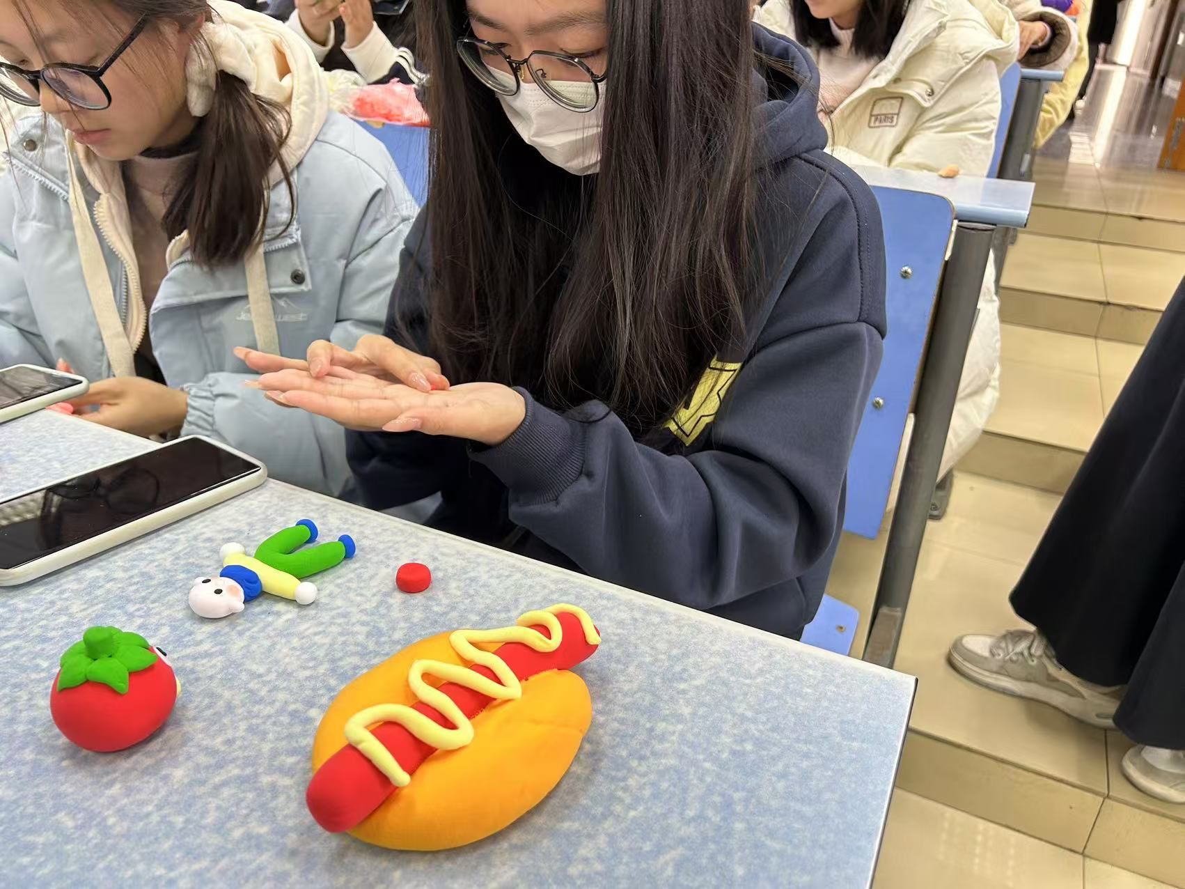 活动伊始,主持人围绕“12.5”心理健康教育主题,向同学们进行了心理健康和精神卫生的知识科普。接着通过破冰游戏,迅速拉近了同学们之间的距离,营造了一个轻松愉快的氛围。随后在主持人的简单介绍后,同学们便迫不及待的开始了手中的创作,通过搓、团、捏、接、压等方式,捏出各式各样的造型来表达自己的内心想法,同学们或神情专注,利用各种工具精雕细琢;或相互配合,分工合作,交流彼此的创造思路,现场氛围融洽,欢声笑语不断。