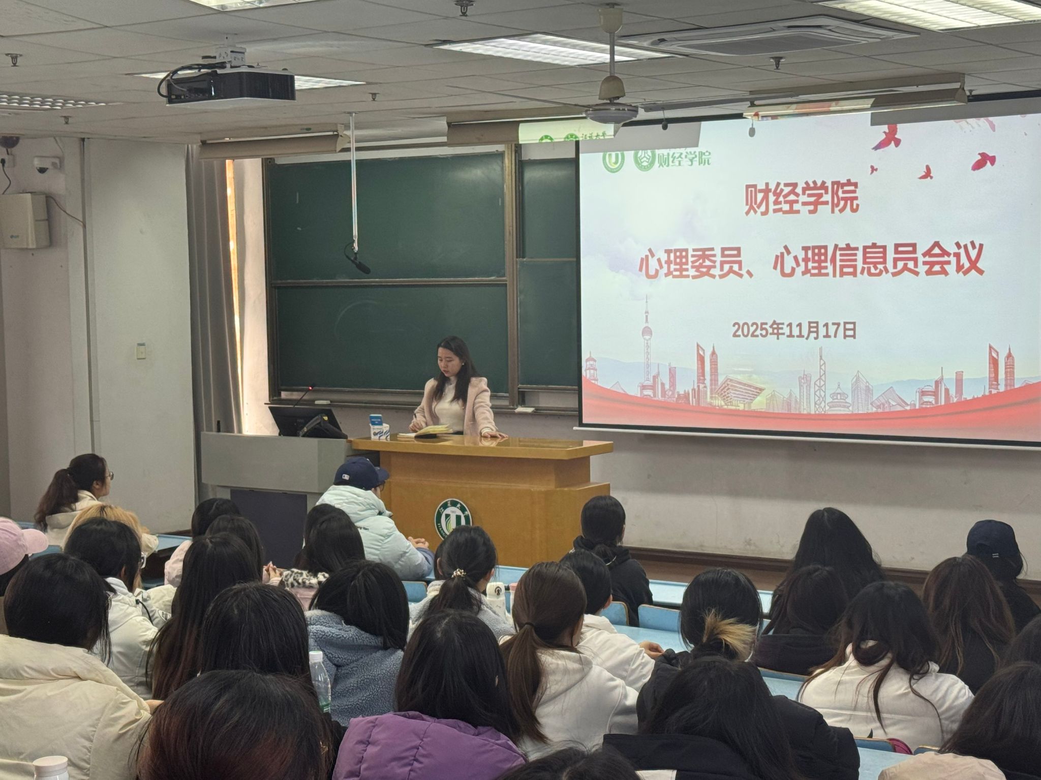 会议伊始,沈玉玲就当前学生心理健康状况及学院心理健康工作进行分享。她指出,心理委员与心理信息员是连接学院、辅导员与学生的重要桥梁,是校园心理健康防护体系的关键一环,其工作的专业性、及时性直接关系到学生心理健康服务的覆盖面与实效性。随后,陈鑫雨回顾了本学期以来学院心理健康工作的开展情况,包括心理普查、主题班会、个体咨询等,并对各位学生骨干在日常工作中的认真负责与积极付出表示感谢。随后,金融2301班心理委员分享了班级心理健康工作经验:“我们建立了‘每周小谈心’机制,通过一对一交流及时了解同学情绪变化,同时在班级群定期推送心理科普文章,帮助大家树立科学的心理健康观念。”