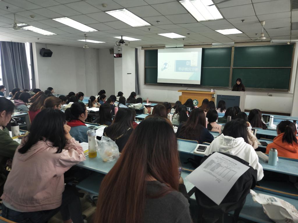 大三阶段,正处于选择的迷茫时期,考研还是就业是学生们正面临的问题。为了帮助学生更好地规划未来,4月中旬,英国上市官网3652018级辅导员张颖老师为7个专业的学生开展了共4场班会,全体2018级学生参与。
