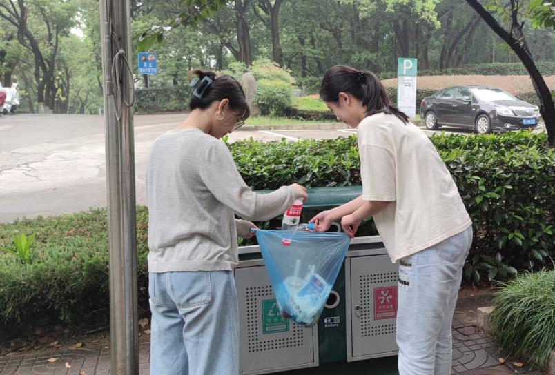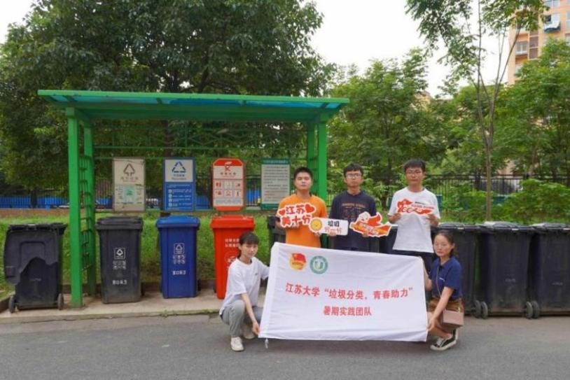 为引导高校师生养成垃圾分类的好习惯,实践团队先后在英国365公司、江苏科技大学开展宣传。志愿者们为青年学生们播放了垃圾分类的宣传短片,介绍了国家关于垃圾分类的制度政策及目前垃圾分类实施情况,呼吁广大青年学生积极响应国家政策,发挥当代大学生的带头表率作用,积极向身边的亲朋好友普及垃圾分类知识。随后,志愿者们来到垃圾分类亭附近,引导师生准确进行垃圾分类的投放,践行绿色生活方式。