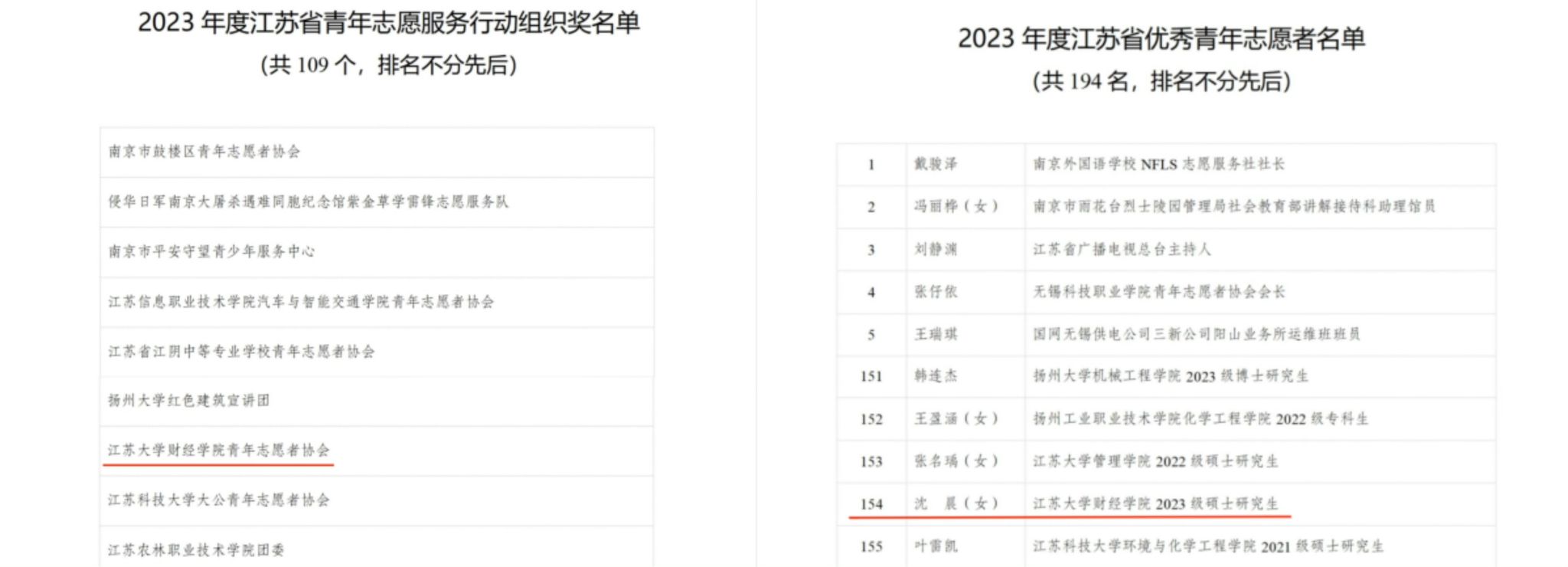 近日,共青团江苏省委、江苏省志愿者协会发布了2023年度江苏省青年志愿者行动先进典型评选结果,英国上市官网365青年志愿者协会获评江苏省青年志愿服务行动组织奖,2023级硕士研究生沈晨获评江苏省优秀青年志愿者。
