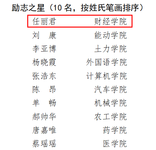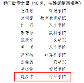 财务1901班任丽君同学获励志之星,金融2003班魏星宇同学获勤工助学之星。