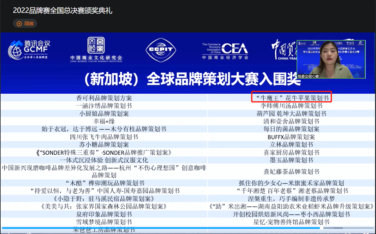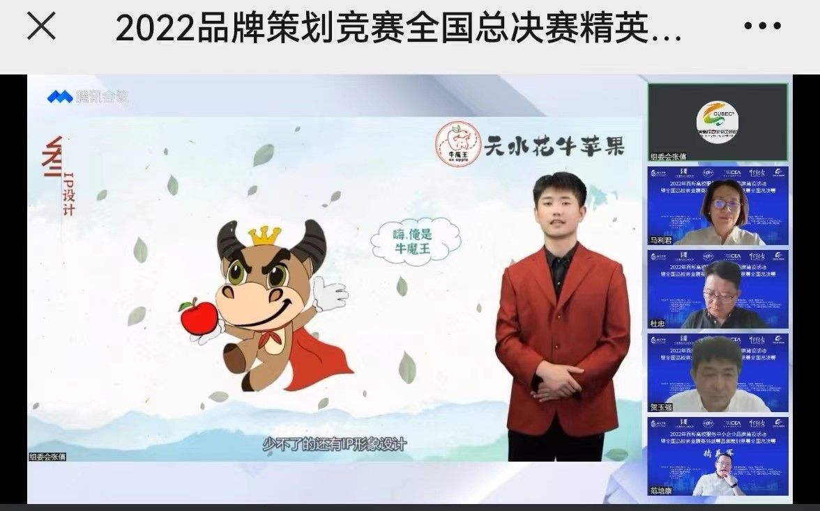 5月29日,2022年全国高校商业精英挑战赛品牌策划竞赛在线上举办。我院获一等奖13项、二等奖4项,学校获得最佳院校组织奖。其中,作品《“牛魔王”花牛苹果》策划项目入围新加坡全球品牌策划大赛总决赛。