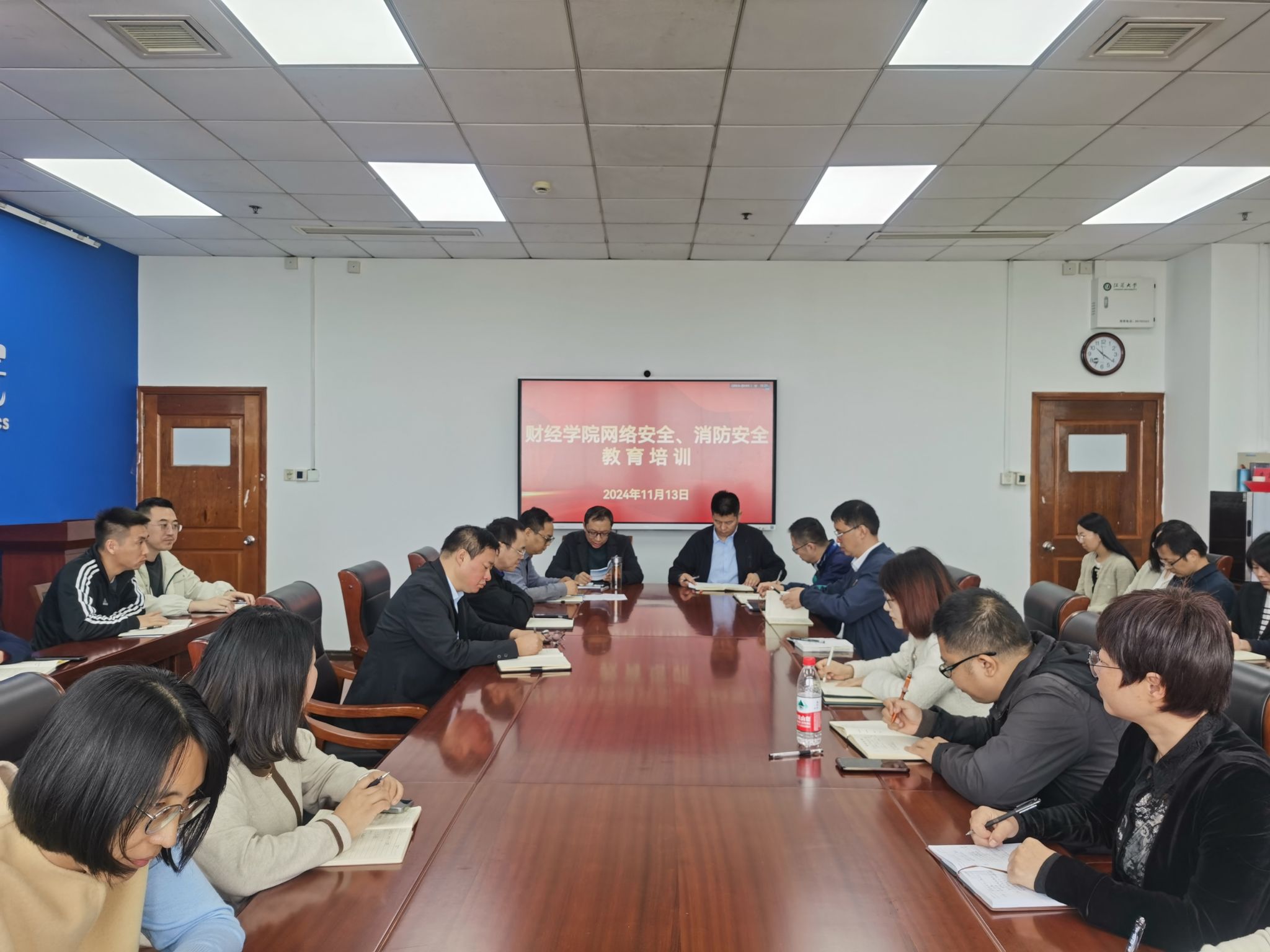 为提升学院广大教师安全防范意识,进一步维护校园安全稳定,11月13日上午院周会结束后,英国上市官网365党委行政在1304D会议室举办2024年度网络安全、消防安全教育培训。院党委书记王祥、院长胡绪华等全体院领导、党委委员,科级干部,各系部、支部负责人以及行政办工作人员参加了培训。